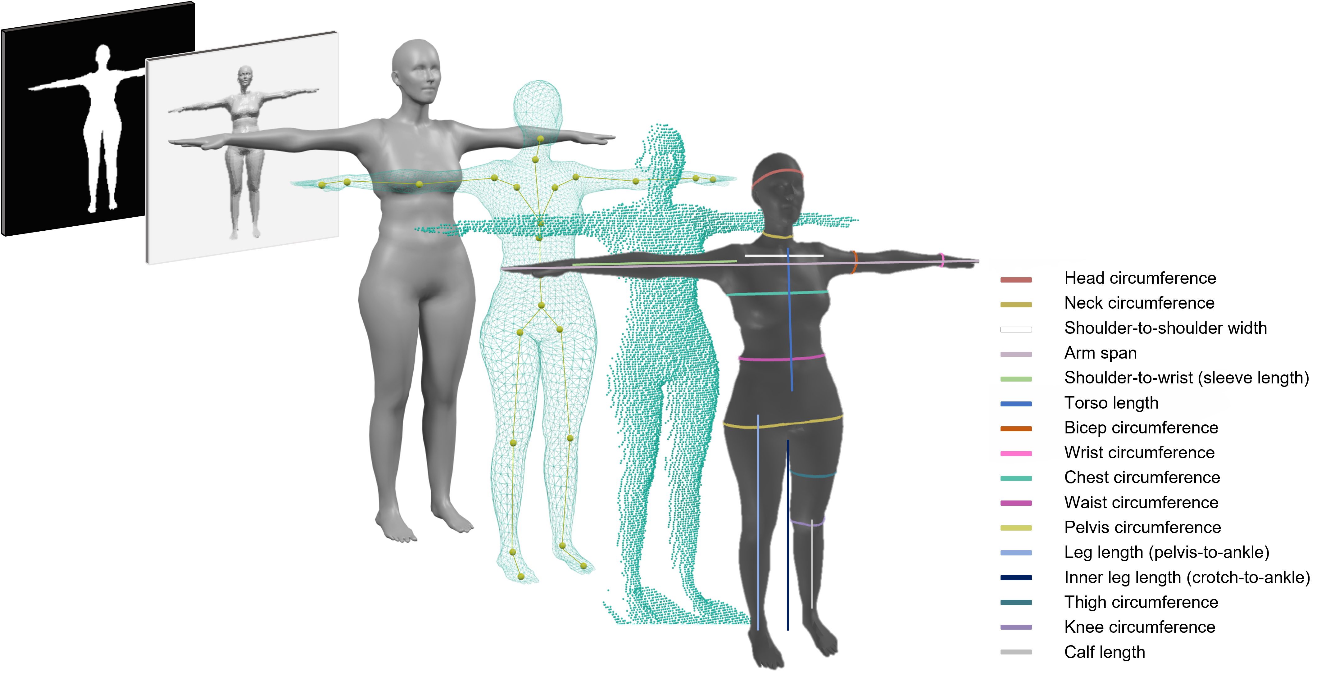 Our 3D computer vision pipelines enable high-fidelity human capture and precise anthropometric measurement. By leveraging the SMPL model, we generate synthetic datasets featuring diverse bod…
